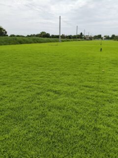 หญ้าเบอร์มิวด้า : เป็นหญ้าที่มีใบละเอียด เนื้อใบค่อนข้างหยาบทนกว่าหญ้าชนิอืนน้ำท่วมก็ไม่ตาย นิยมปลูกตามสนามกอล์ฟ